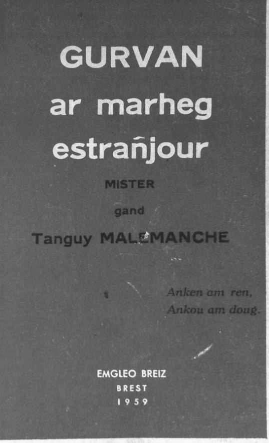 Pa lennomp rakskrid Gurvan ar Marheg Estrañjour, ne gavomp ket hepken un tamm c’hoariva. Kavout a reomp ur manifesto politikel ha speredel kriz, skrivet gant un den desket-bras hag a zifenn e vro a-enep un nerz a glaske lazañ e ene.
